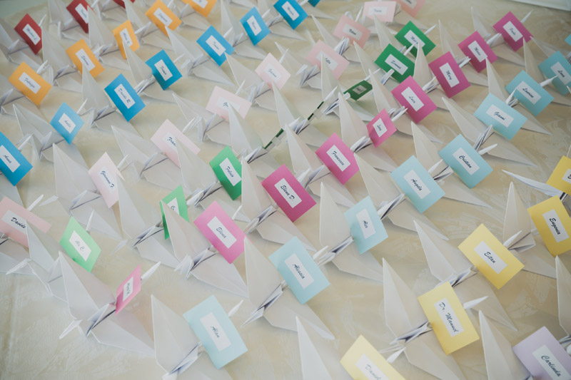 L'incontro e l'unione di due persone e di due culture diverse, l'Italia e il Brasile, ci ha portato ad interpretare questo matrimonio di primavera con il tema "va dove ti porta il cuore". Non ci siamo accontentati delle classiche proposte ma abbiamo rivisto il viaggio in chiave originale e colorata inserendo gli origami e degli aerei di carta per un effetto inaspettato e fresco, alleggerendo la tensione per un giorno così importante e avvicinandoci al divertimento di una festa. Non abbiamo rinunciato alla tradizionale bomboniera brasiliana dei "bem casado" ma li abbiamo presentati in scatole di carta giapponese realizzate a mano e abbiamo così parlato degli sposi e delle loro caratteristiche peculiari, così distanti ma così vicine. E' stata una vera festa!